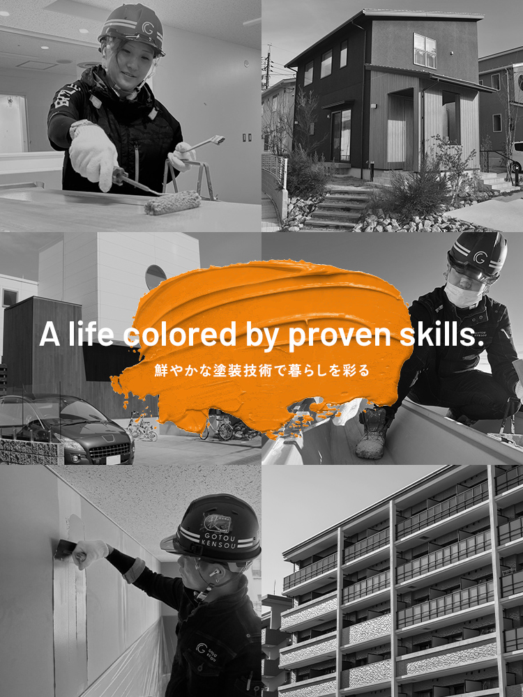 後藤建装の代表は建築塗装のなかでも一番の資格といわれる国家資格、「建築塗装一級技能士」を保有。その技能と技術をフルに活かして職人を指導しているため、後藤建装の職人たちは技能も知識も一級品です。